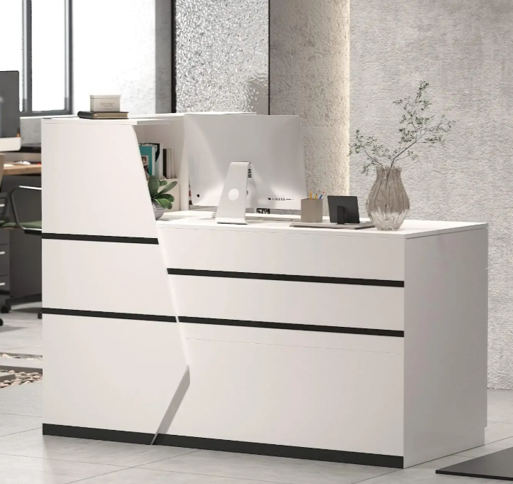 A reception desk is the centerpiece of any front office, creating the first impression for visitors, clients, and customers. Designed to combine professionalism, functionality, and visual appeal, this reception desk provides an organized and welcoming workspace for receptionists while enhancing the overall appearance of the office.