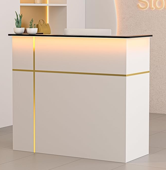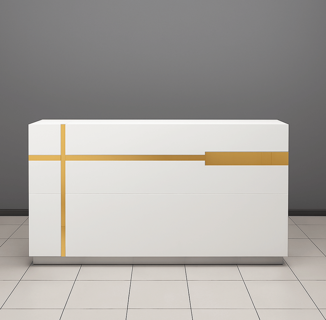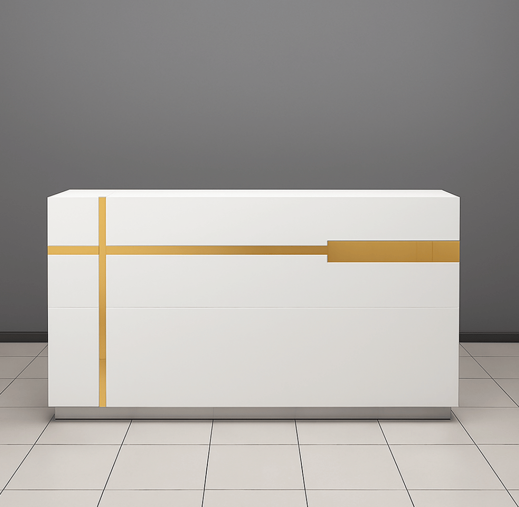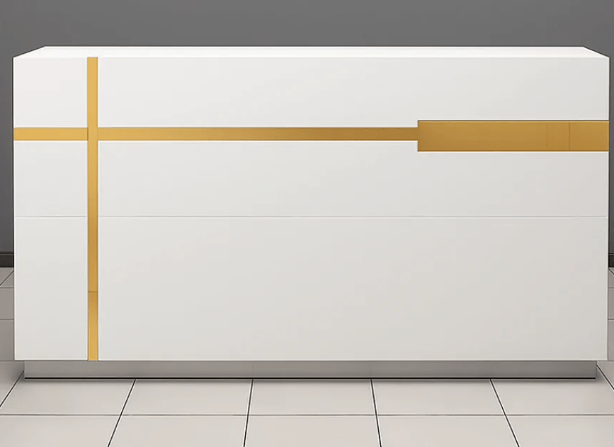 Crafted from high-quality engineered wood with a premium white finish, this modern reception desk delivers both durability and visual appeal. The smooth, scratch-resistant surface ensures long-lasting beauty, while the sturdy structure provides reliable support for daily commercial use. Furthermore, the clean white color enhances brightness in your reception area, creating a welcoming and sophisticated atmosphere.