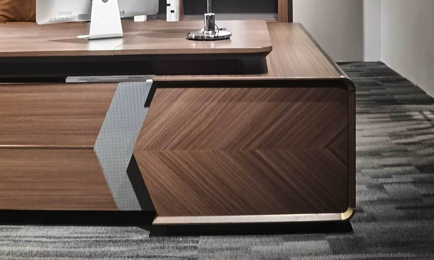 Visually, the desk features a sleek and refined finish that complements both contemporary and classic office interiors. Additionally, its clean lines and executive styling project confidence and authority. Therefore, it serves as a strong focal point in executive cabins, managerial offices, and premium workspaces.