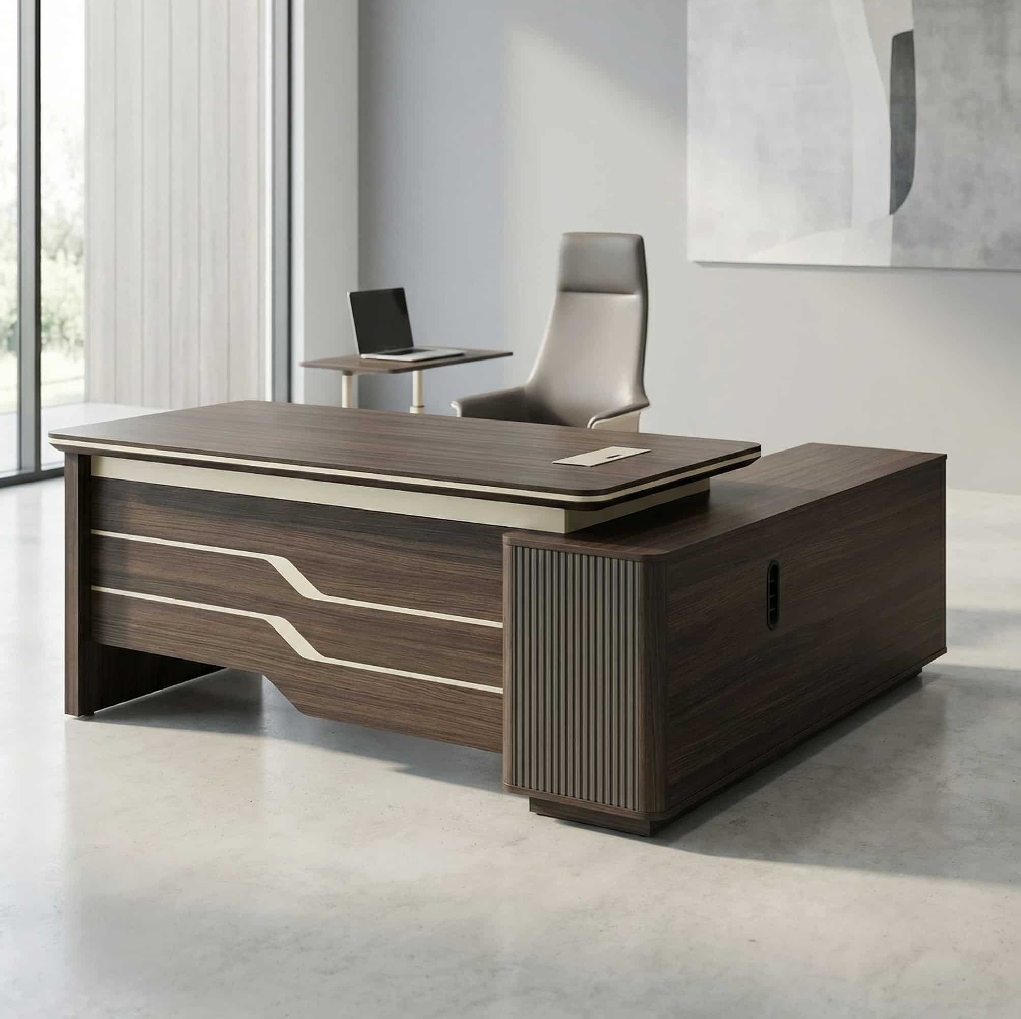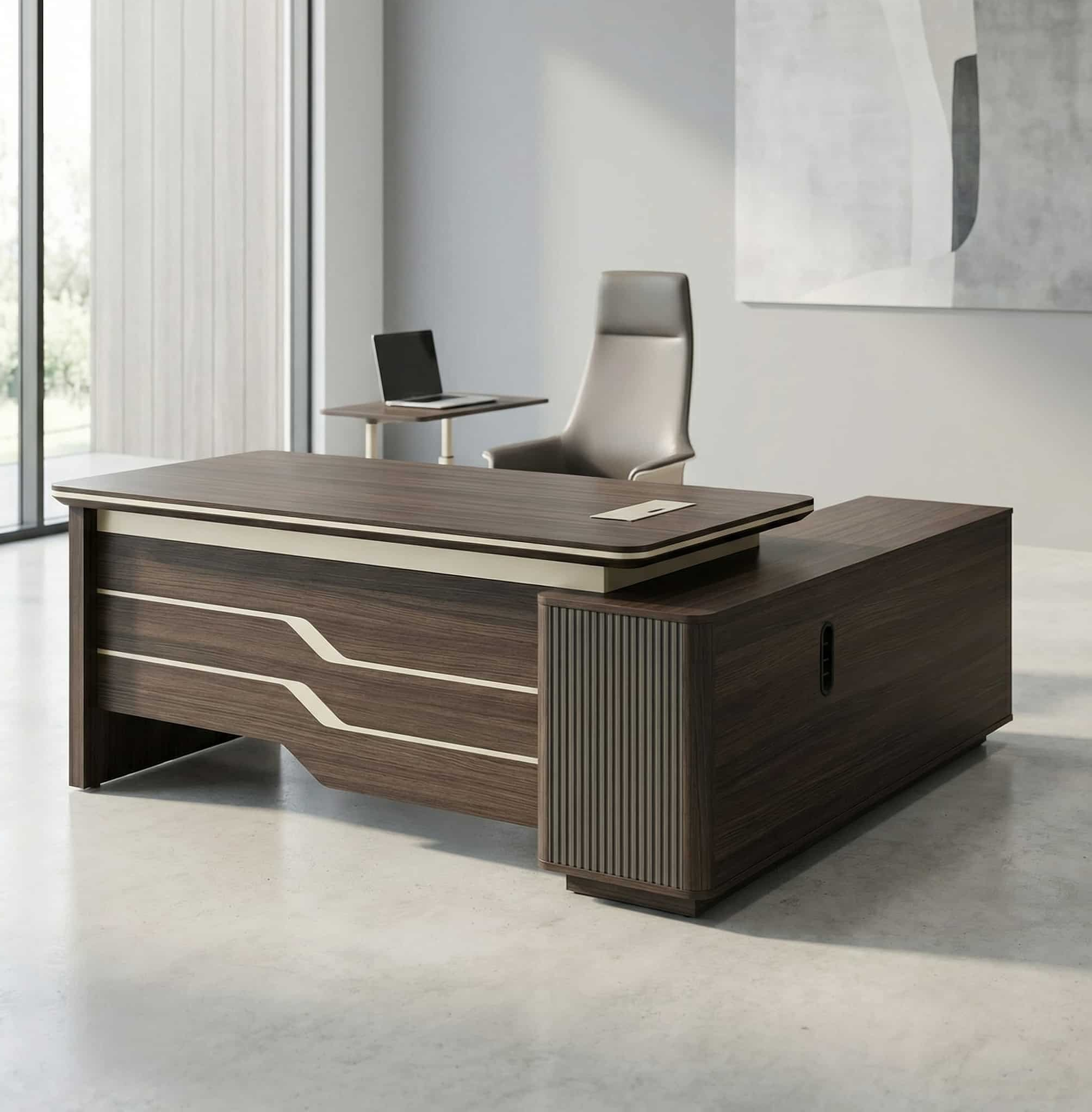 Crafted for everyday productivity, the desk features a sturdy construction that ensures long-lasting performance. Its modern executive aesthetic complements both contemporary and classic office interiors, making it a smart investment for professionals who value comfort and efficiency.