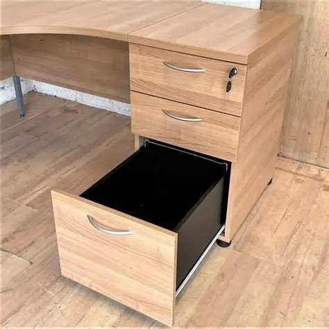 Integrated Storage: Includes drawers or cabinets for organized work essentials.