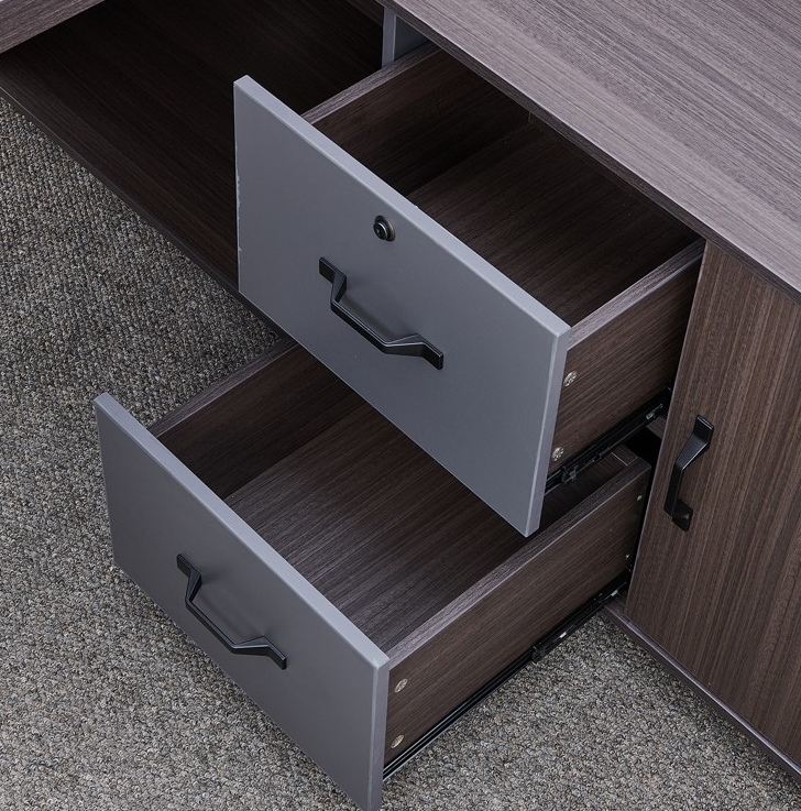 – Integrated drawers and storage cabinets – keep files and office supplies organized and within reach