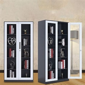 The dual swing doors open to reveal spacious shelves that can hold files, documents, office supplies, and personal items with ease. For added safety, the cabinet features a lockable mechanism, ensuring your confidential documents and valuables are always secure.