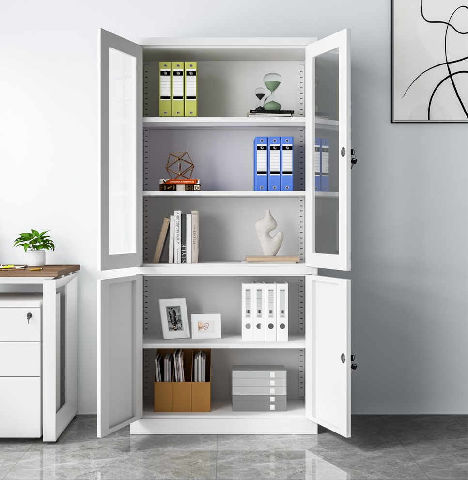 Crafted from heavy-duty steel with a powder-coated finish, this cabinet is built to withstand daily use while resisting corrosion, scratches, and wear. The dual swing doors open to reveal adjustable shelves—perfect for storing files, stationery, equipment, or uniforms.