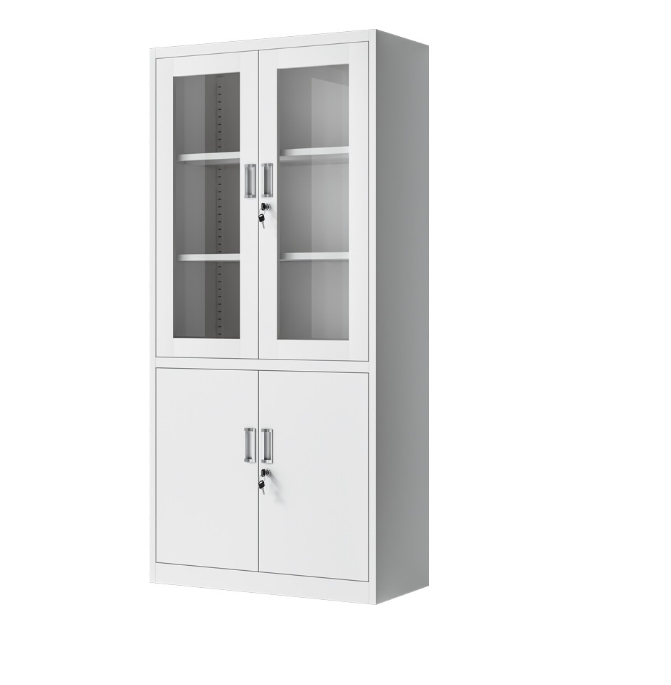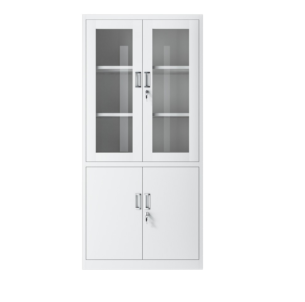 Configuration: 2-door glass top + 2-door solid bottom with safe