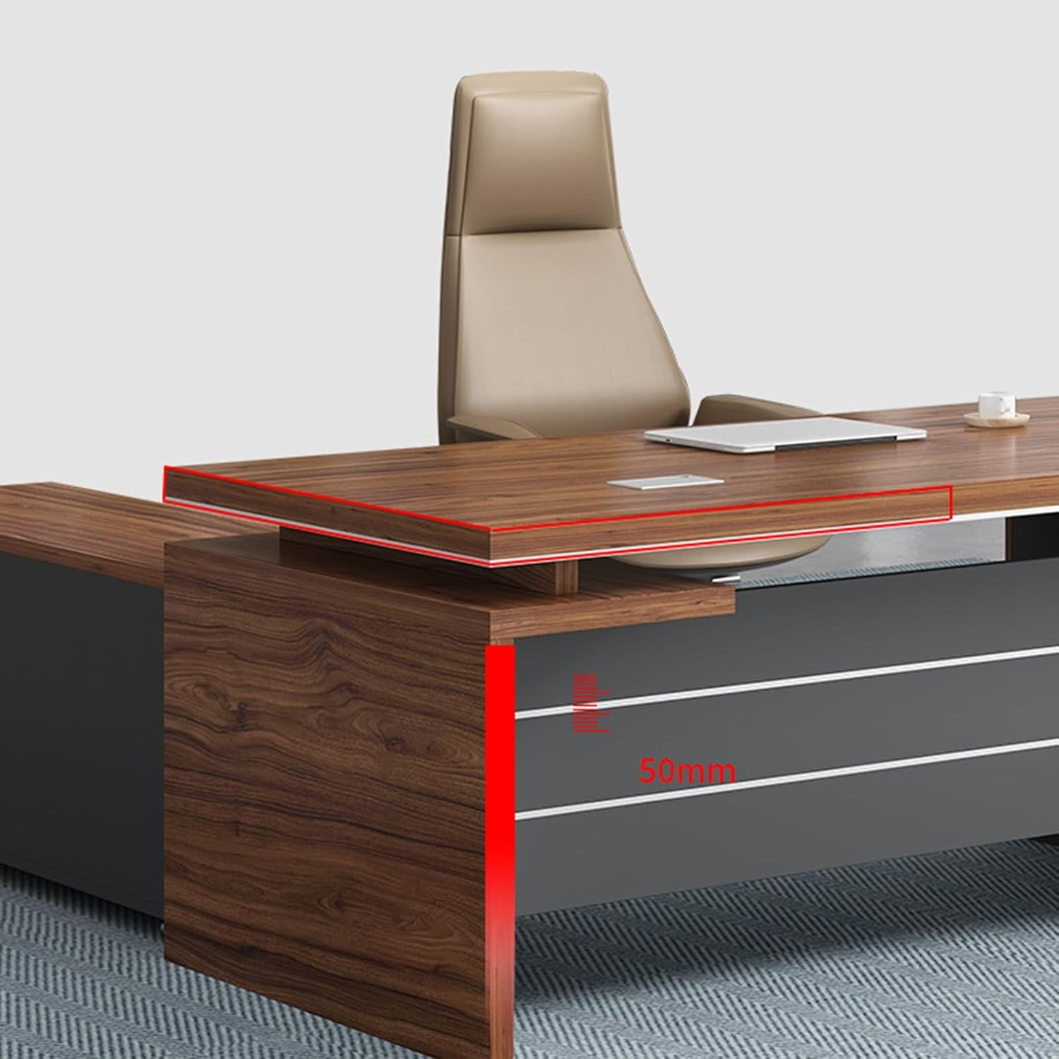 • Dimensions: 120cm (L) x 60cm (D) x 75cm (H) – standard executive desk size