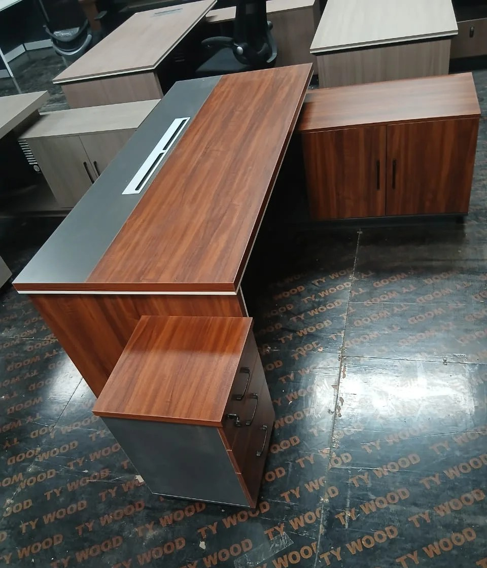 Crafted from high-quality materials, this desk ensures durability and stability for daily office use. The spacious surface and thoughtfully designed layout allow for organized workstations, keeping your office clutter-free. Its elegant finish and ergonomic design enhance comfort and complement any office décor.