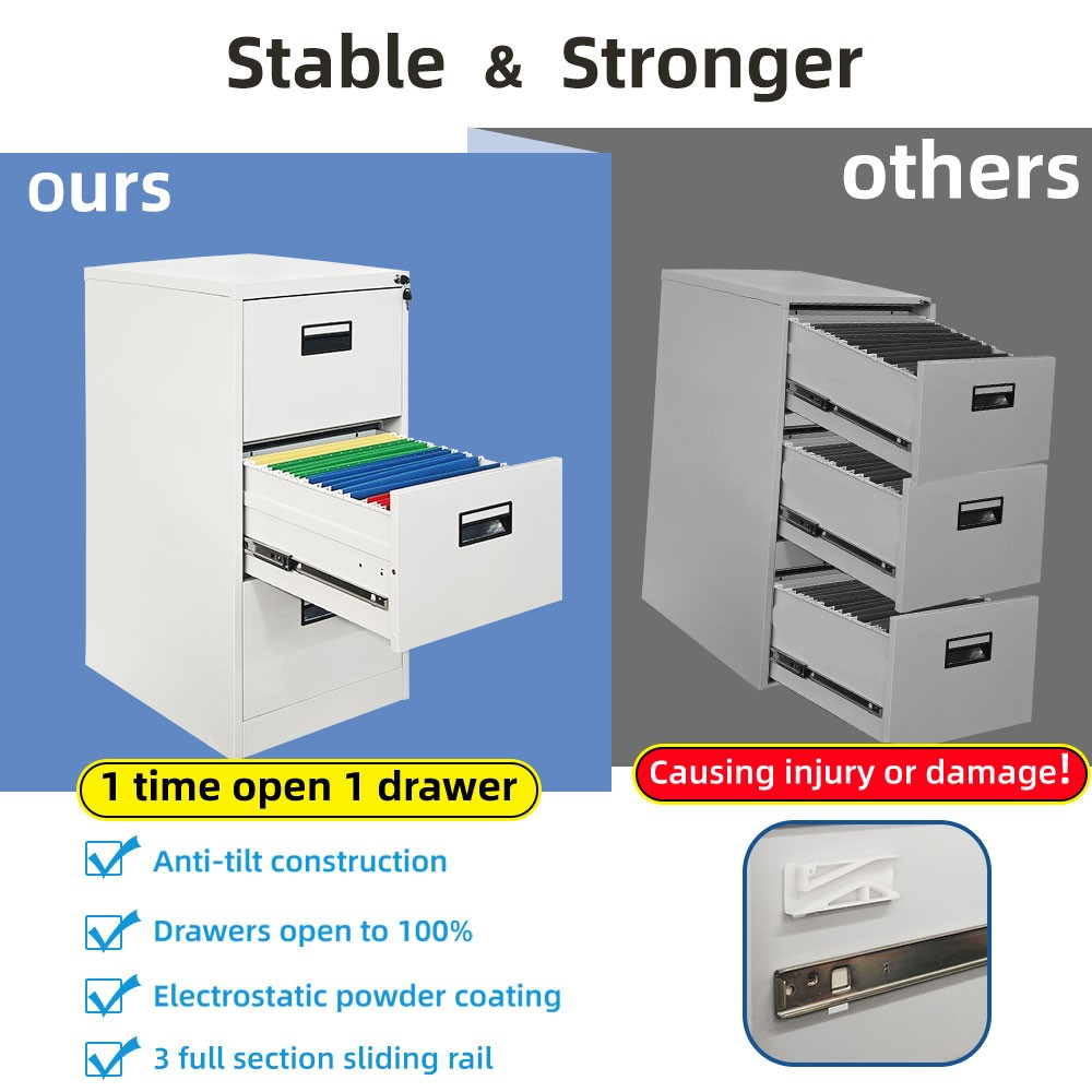 ✅ Anti-Tilt Safety Feature – Prevents multiple drawers from opening at once