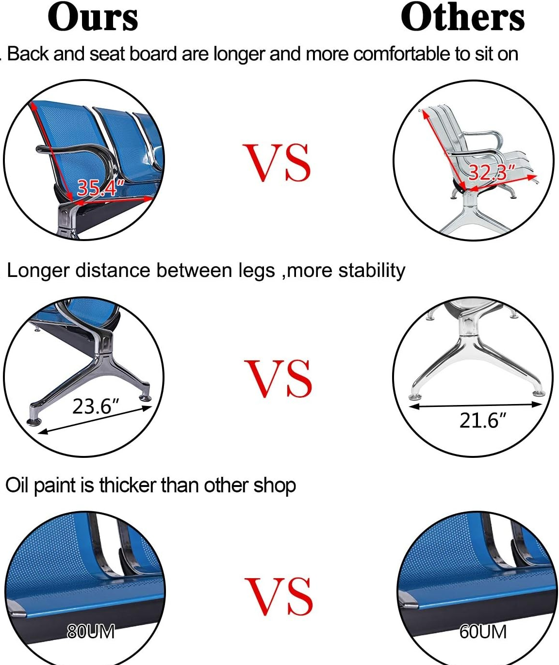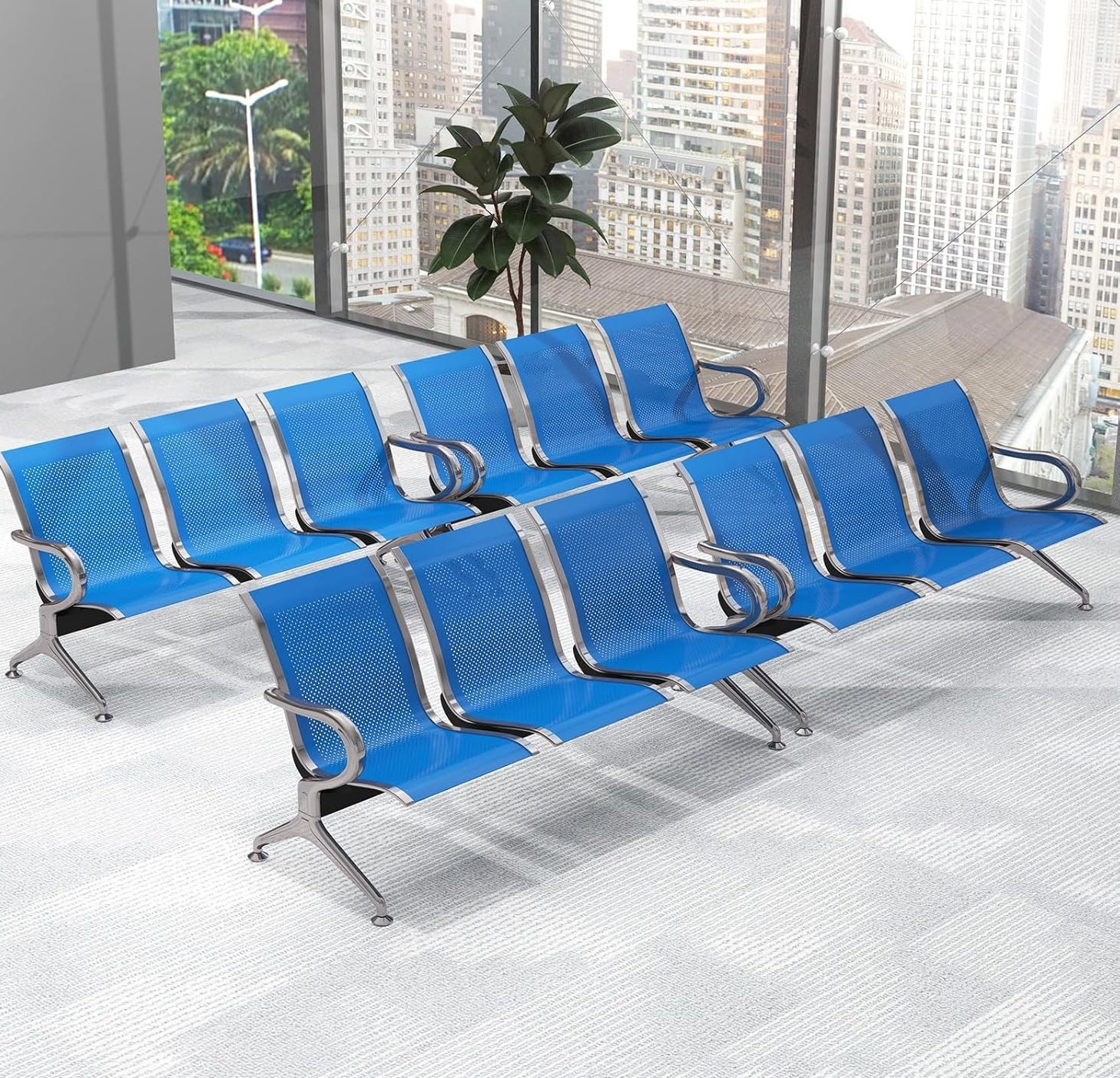 Each seat is fitted with high-density foam padding and durable upholstery (fabric or leatherette), providing comfort even during extended waits.