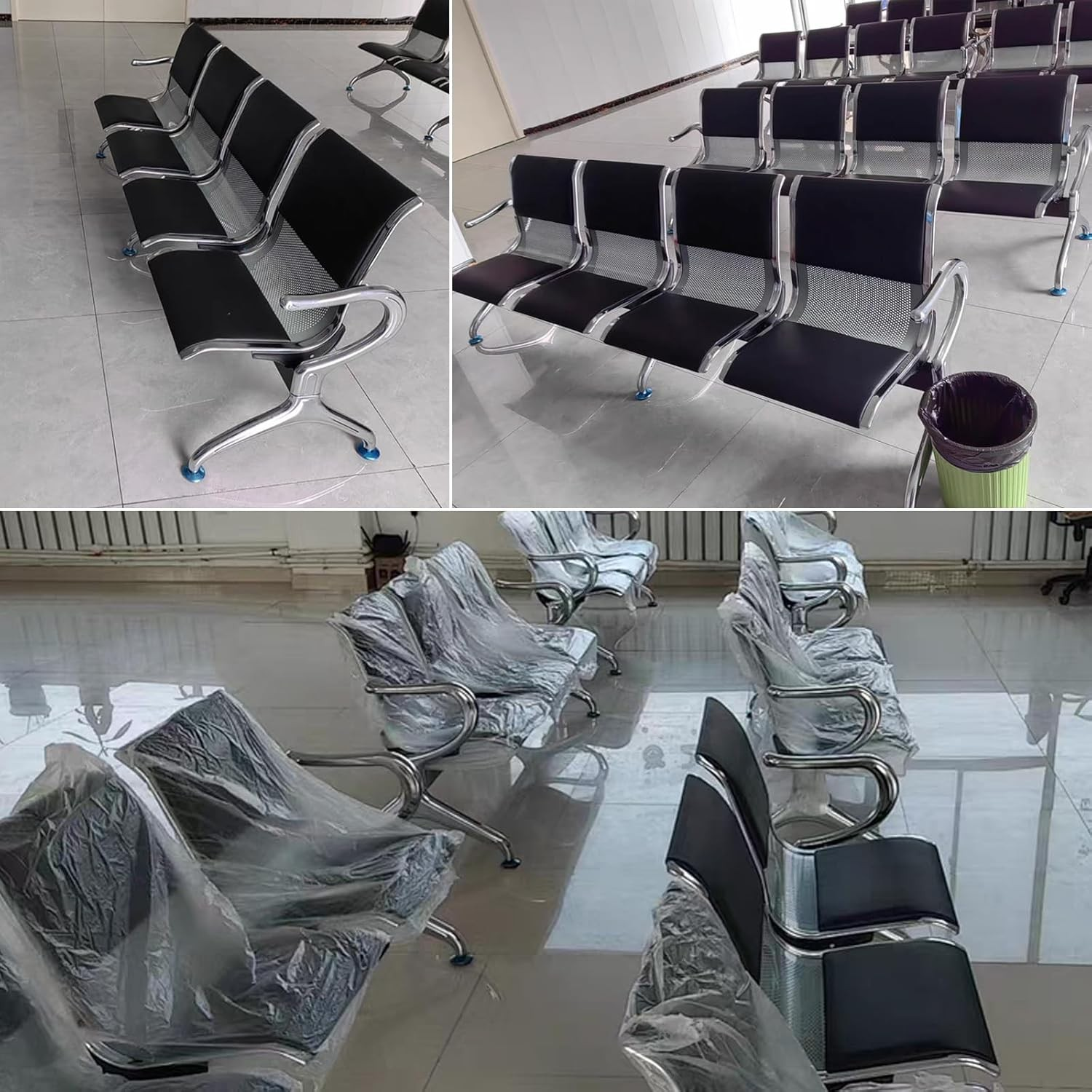 Each seat is fitted with high-density foam padding and durable upholstery (fabric or leatherette), providing comfort even during extended waits.