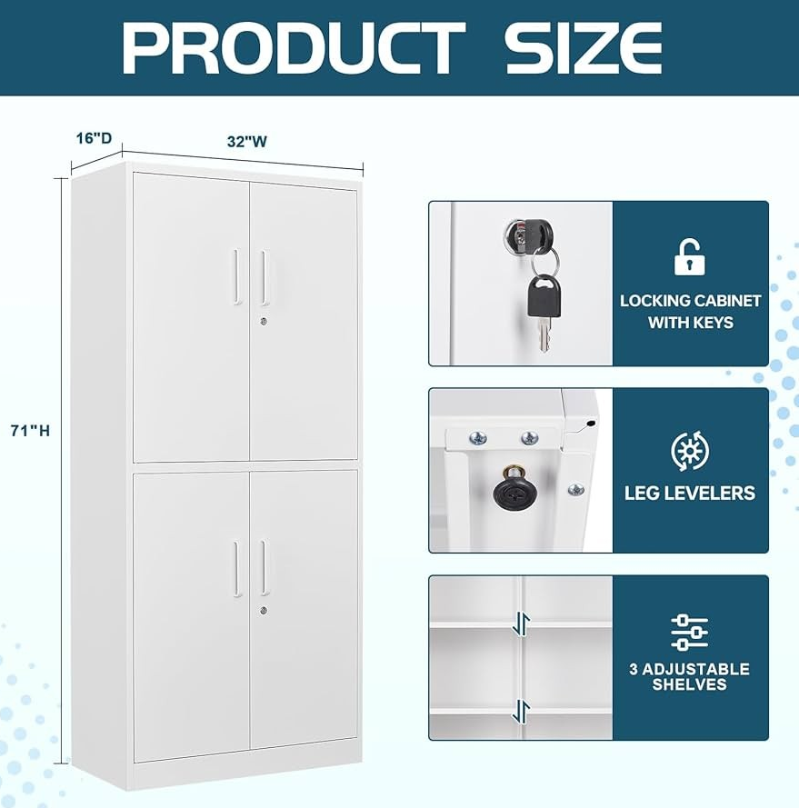 Comes with 2–4 adjustable shelves, allowing you to customize storage for files, boxes, and equipment of varying sizes. -