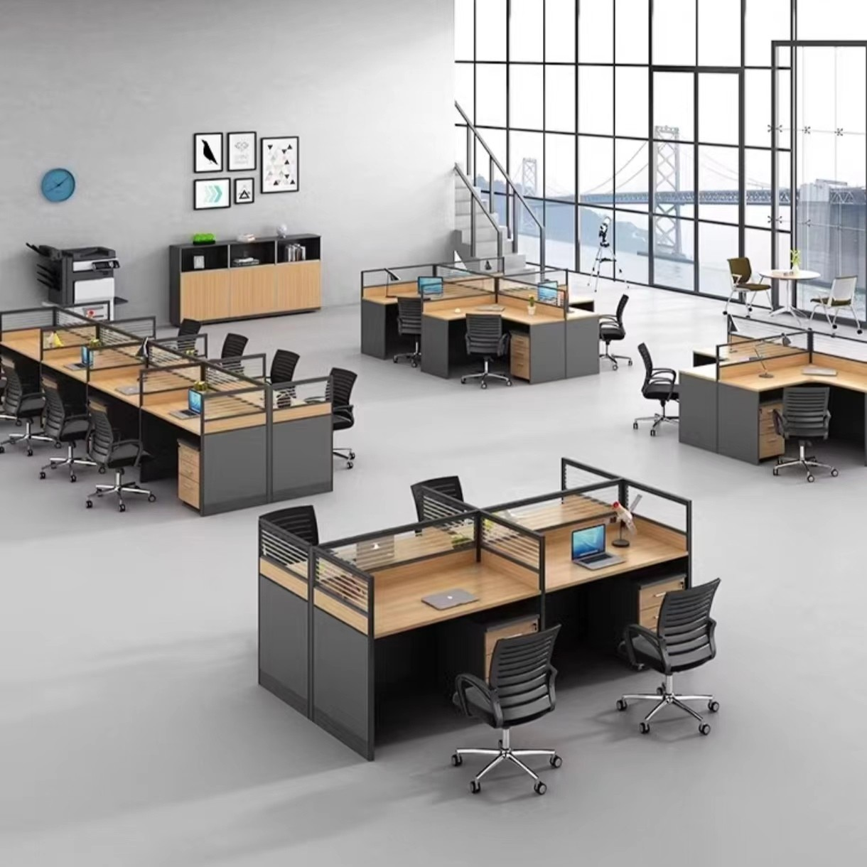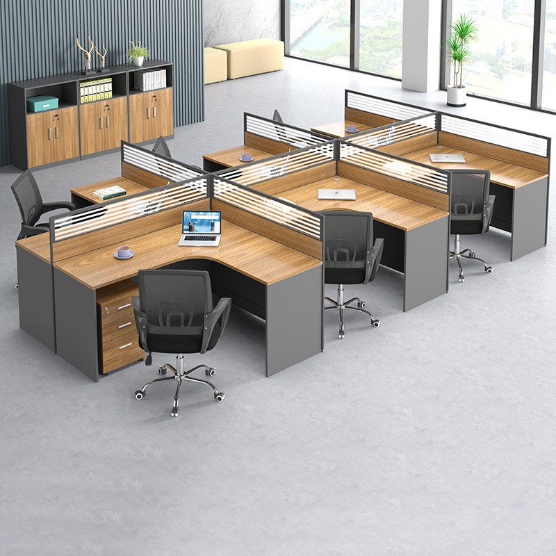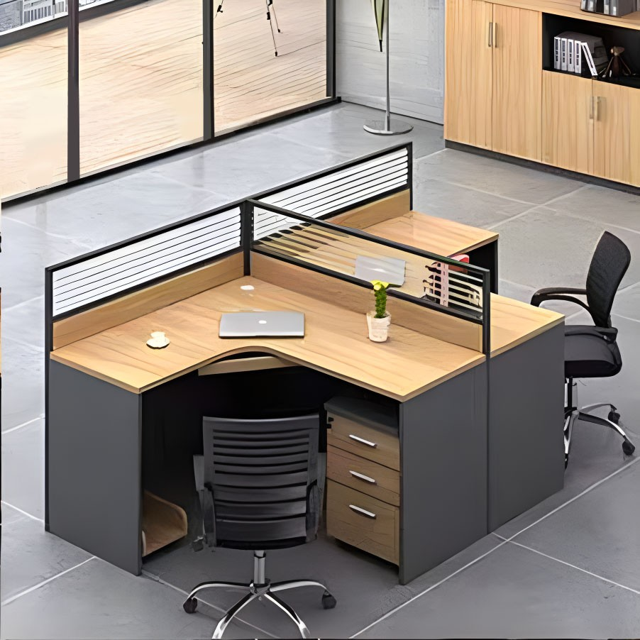 Each workstation features spacious desktops and built-in partitions to provide personal space while maintaining an open, collaborative environment. Crafted from high-quality engineered wood with a durable finish, it ensures long-lasting performance and easy maintenance.