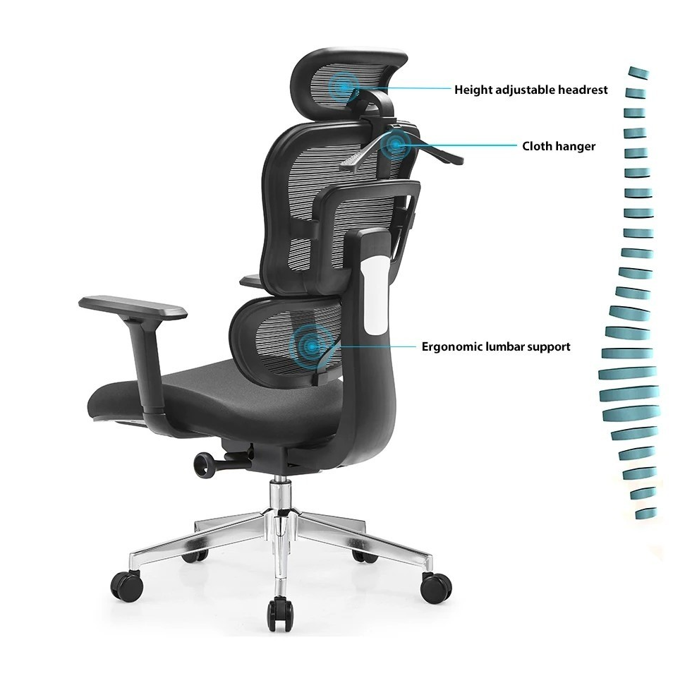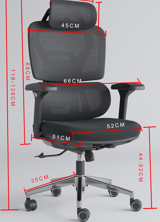 Highback Ergonomic Support: Full back support to reduce strain on neck and spine