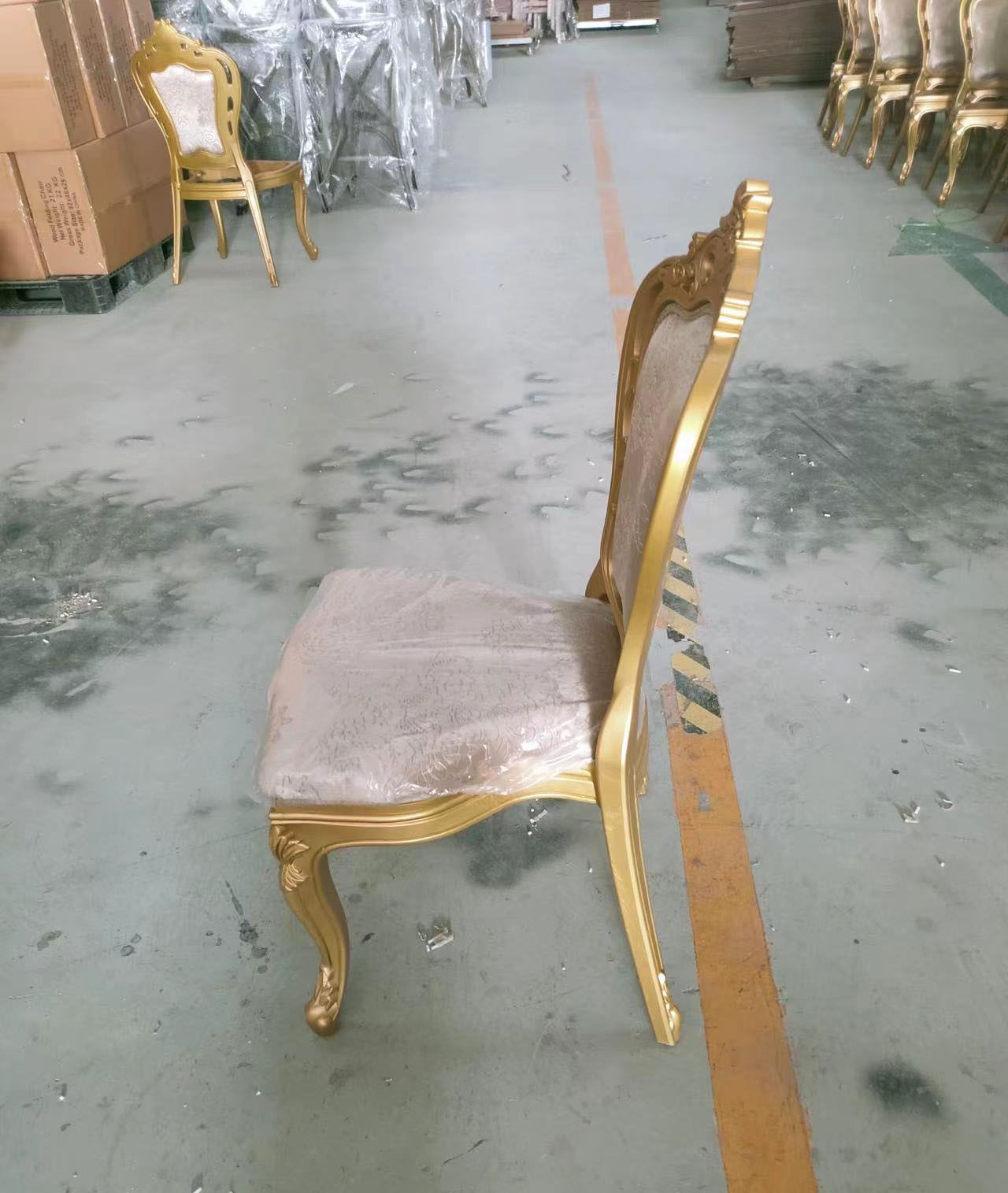 Featuring a cushioned seat and backrest upholstered in high-quality fabric, this chair provides excellent comfort for extended sitting during meetings, banquets, or ceremonies.