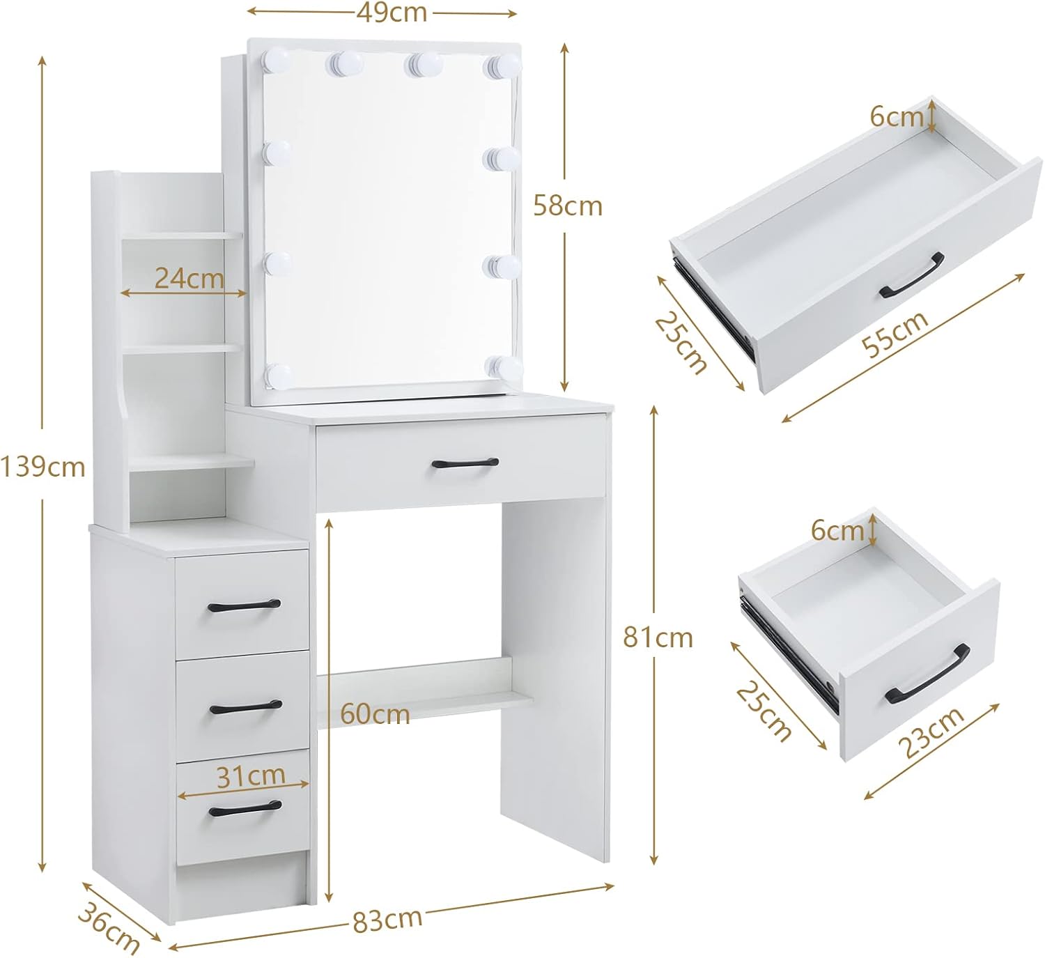 Multiple drawers keep cosmetics, brushes, and accessories neatly organized and easily accessible.✔ Optional Mirror with Lighting