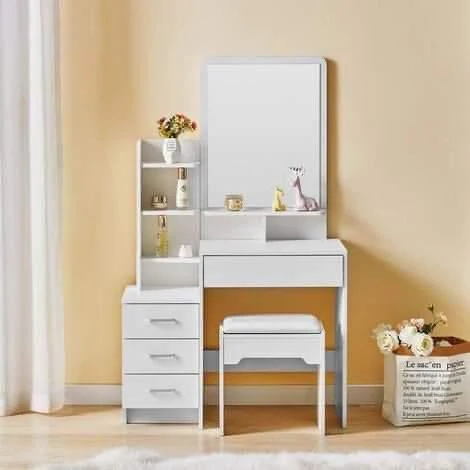 Add elegance and function to your bedroom with the Vanity Bedroom Dressing Table. Designed for beauty and organization, this stylish piece features a spacious tabletop, built-in drawers, and a matching mirror — creating a dedicated space for your daily routine. Whether you’re storing makeup, jewelry, or skincare, this vanity blends storage with a clean, modern look.