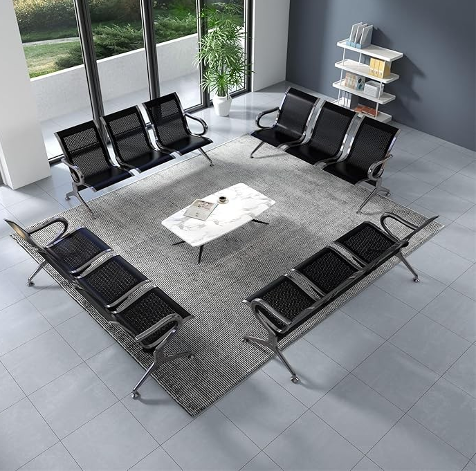 Each seat is fitted with high-density foam padding and durable upholstery (fabric or leatherette), providing comfort even during extended waits.