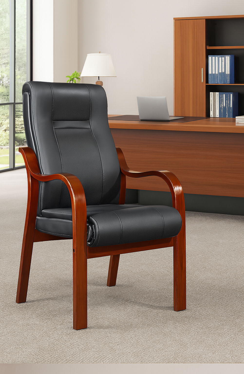 Crafted from high-quality engineered wood with a laminated or veneer finish, available in rich tones like walnut, oak, or espresso for a refined, professional look.