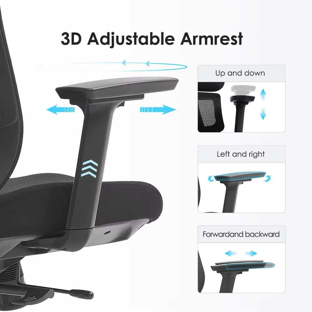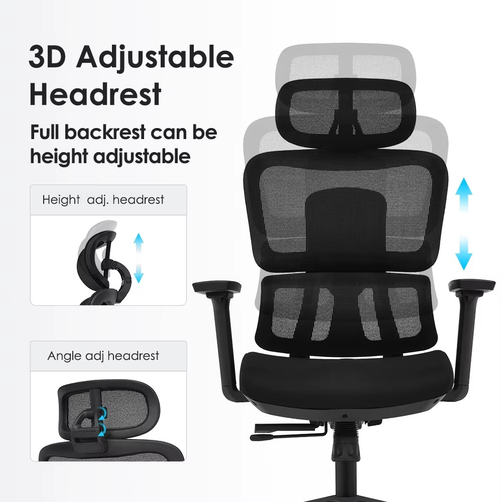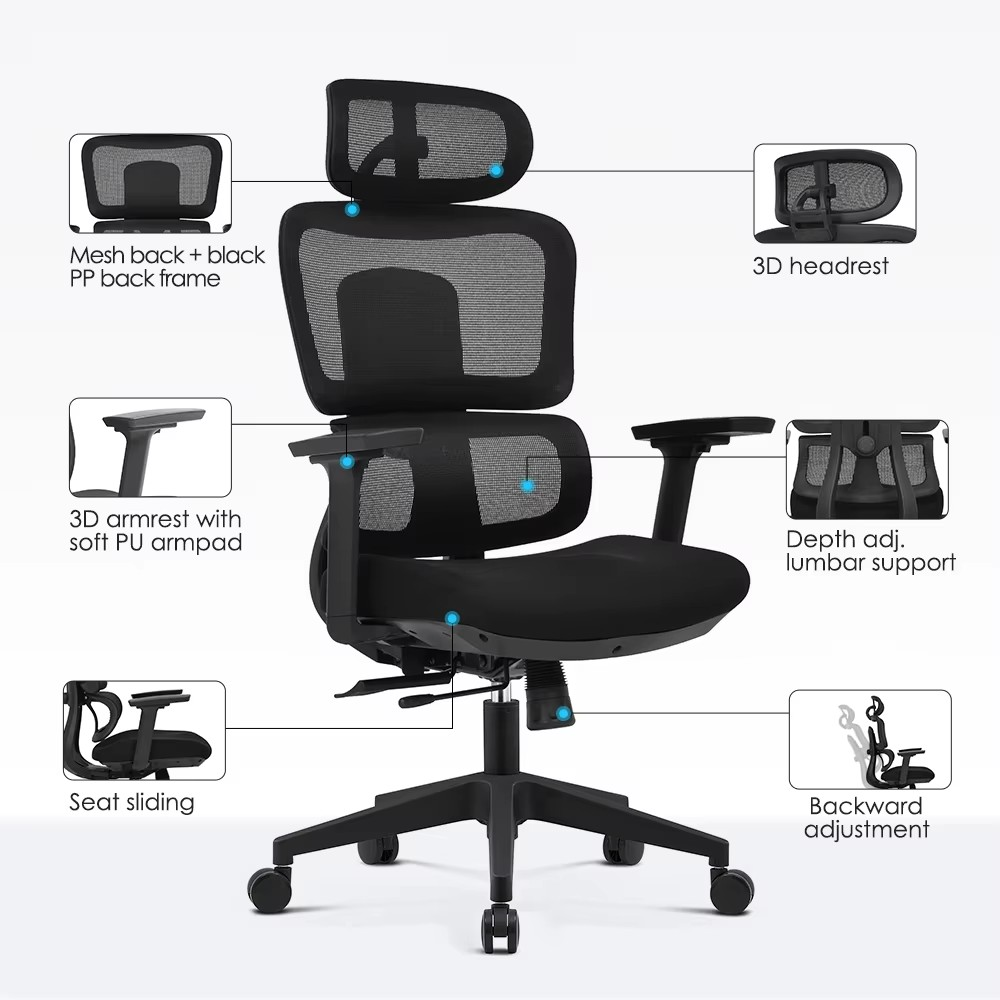 Adjustments: Headrest, lumbar, height, tilt, and armrests