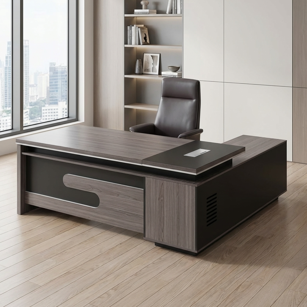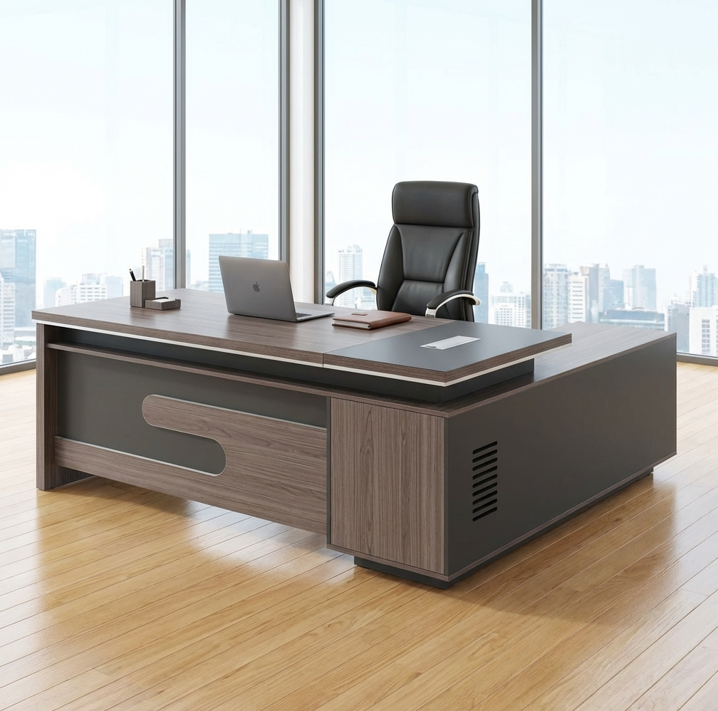 The table rests on a reinforced base and thickened tabletop, ensuring durability and stability for years to come. Its high-quality construction resists scratches, stains, and wear—perfect for daily executive use.