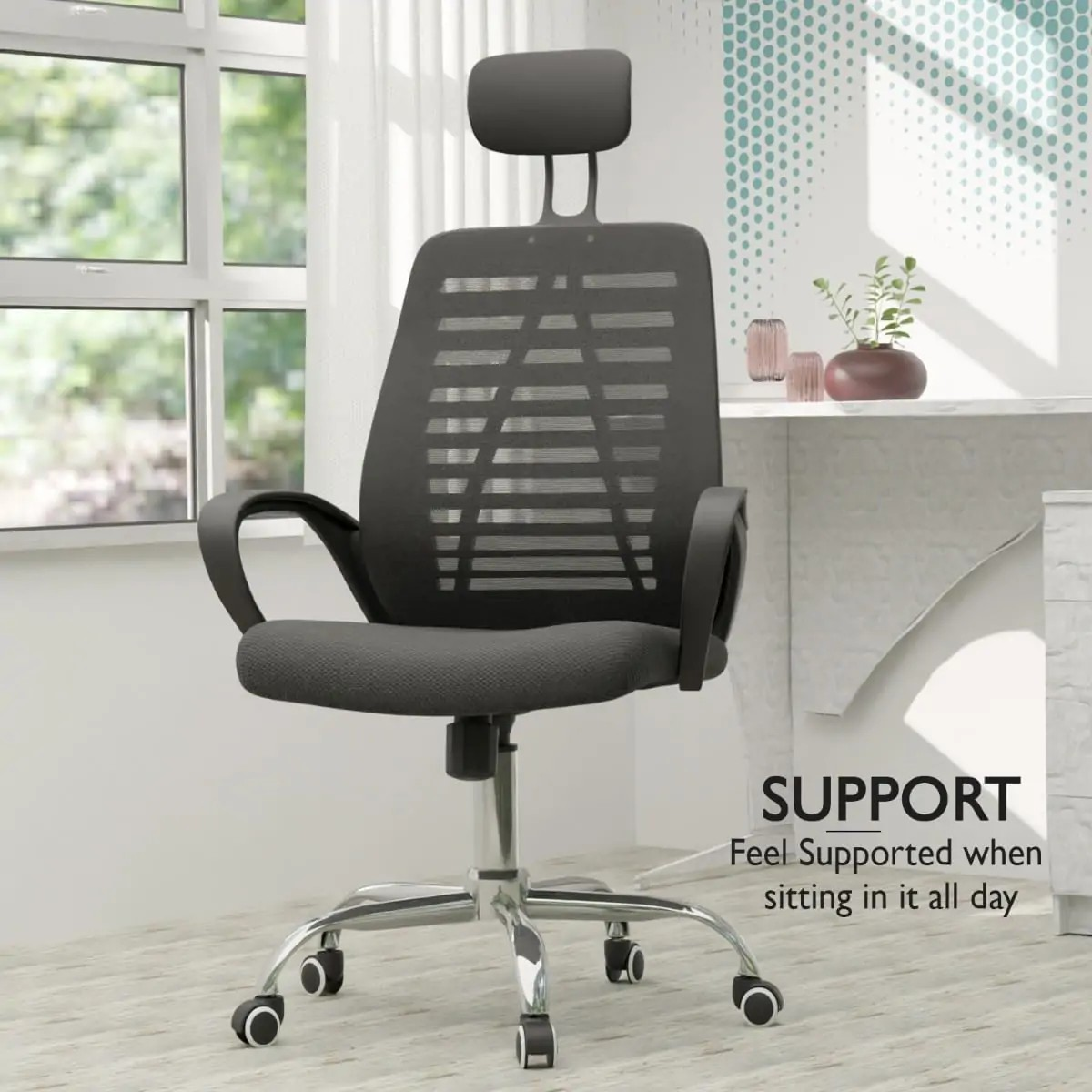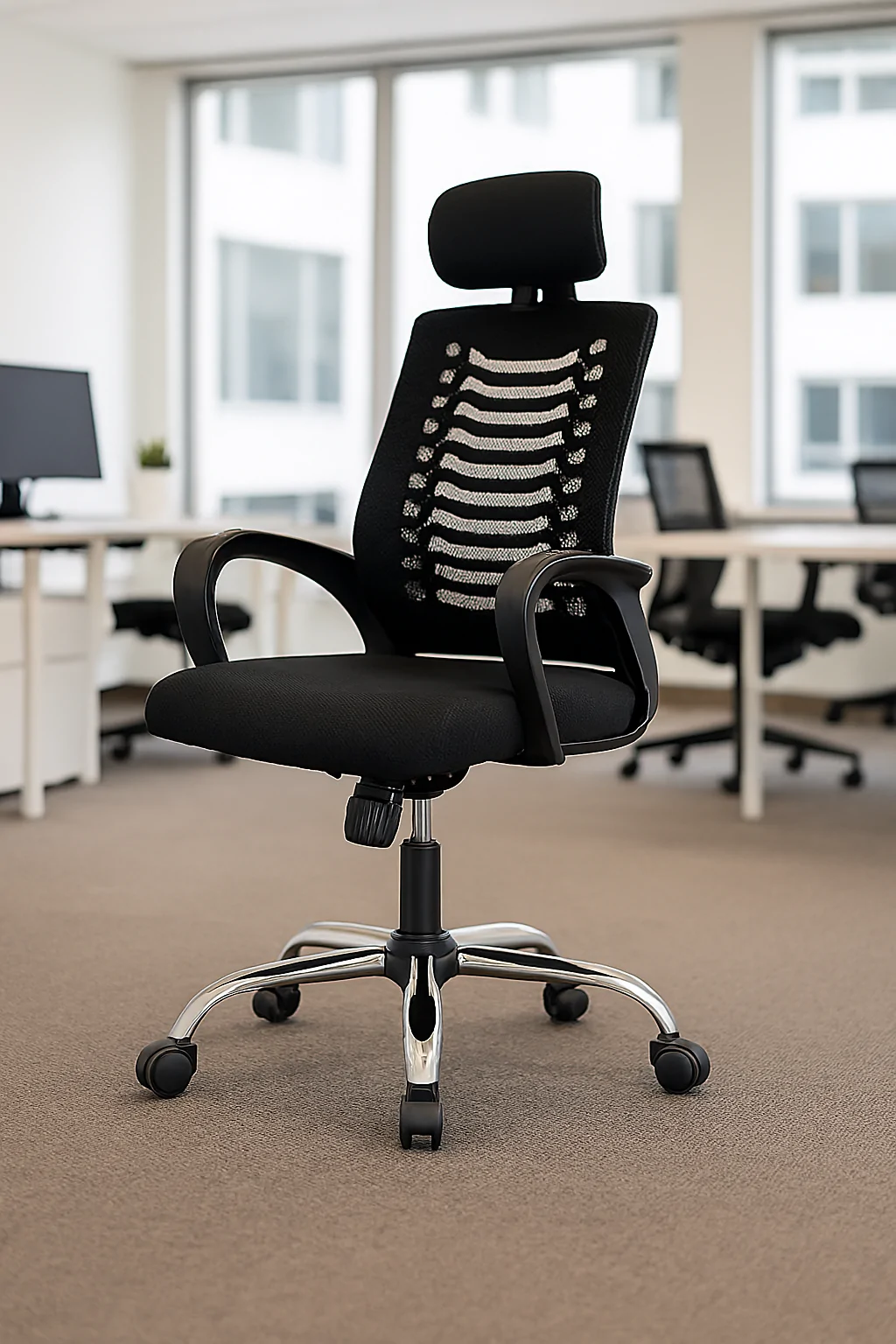 Ergonomic Mesh Backrest – Promotes airflow and maintains posture