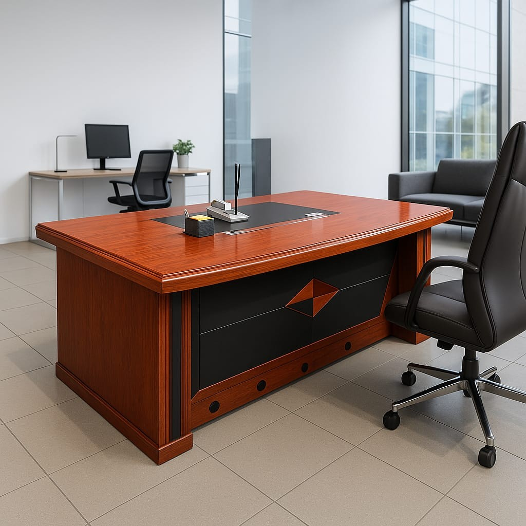 Built on a robust steel or wooden support frame, the 1800mm executive desk is engineered for durability and stability. The desk is designed to handle daily commercial use and supports a weight capacity of up to [insert load, e.g., 120–150 kg]. Non-slip feet and leveling glides ensure balance on any flooring surface.