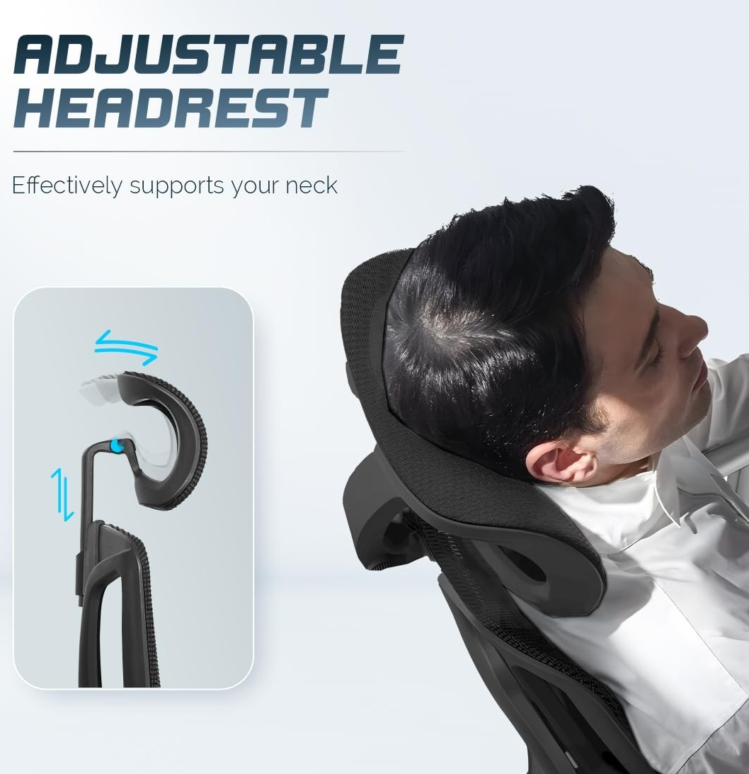 ✅ Executive High-Back Design – Full spinal support with headrest and lumbar contouring
