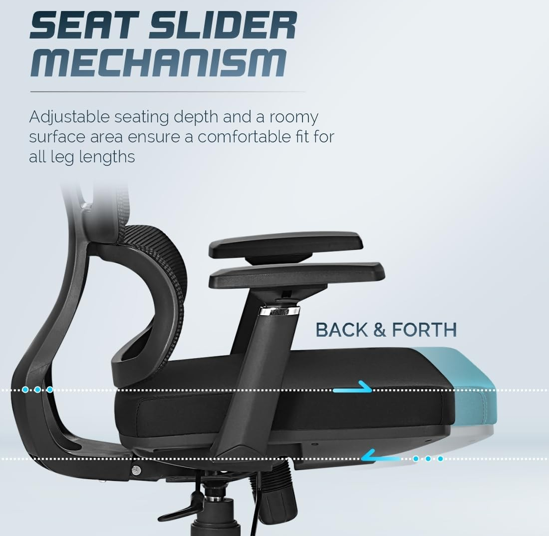 Stay cool and focused with the ventilated mesh back, which promotes airflow and prevents heat build-up during extended use. Whether you’re in a busy office or home setup, the breathable mesh ensures a fresh and comfortable seating experience throughout the day.