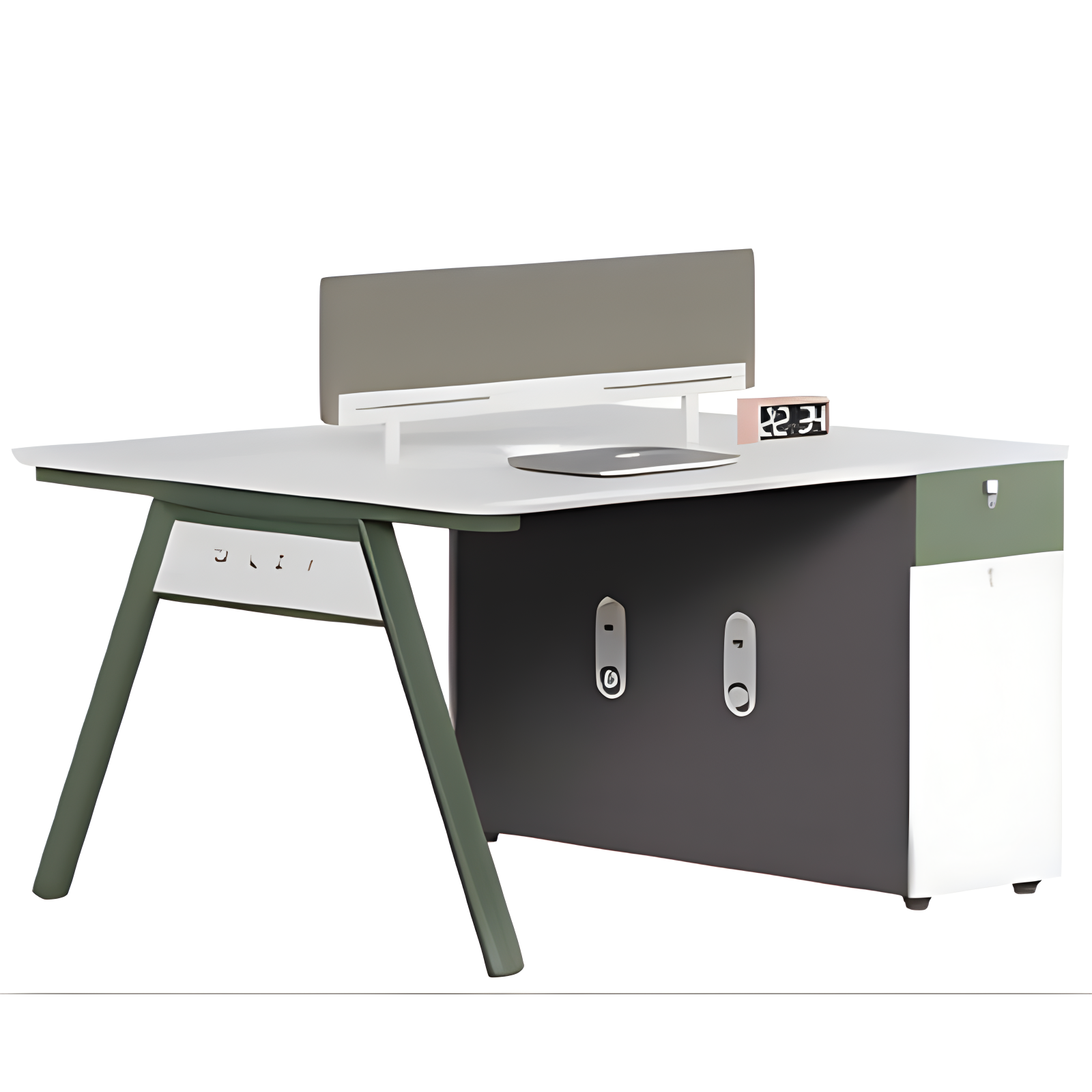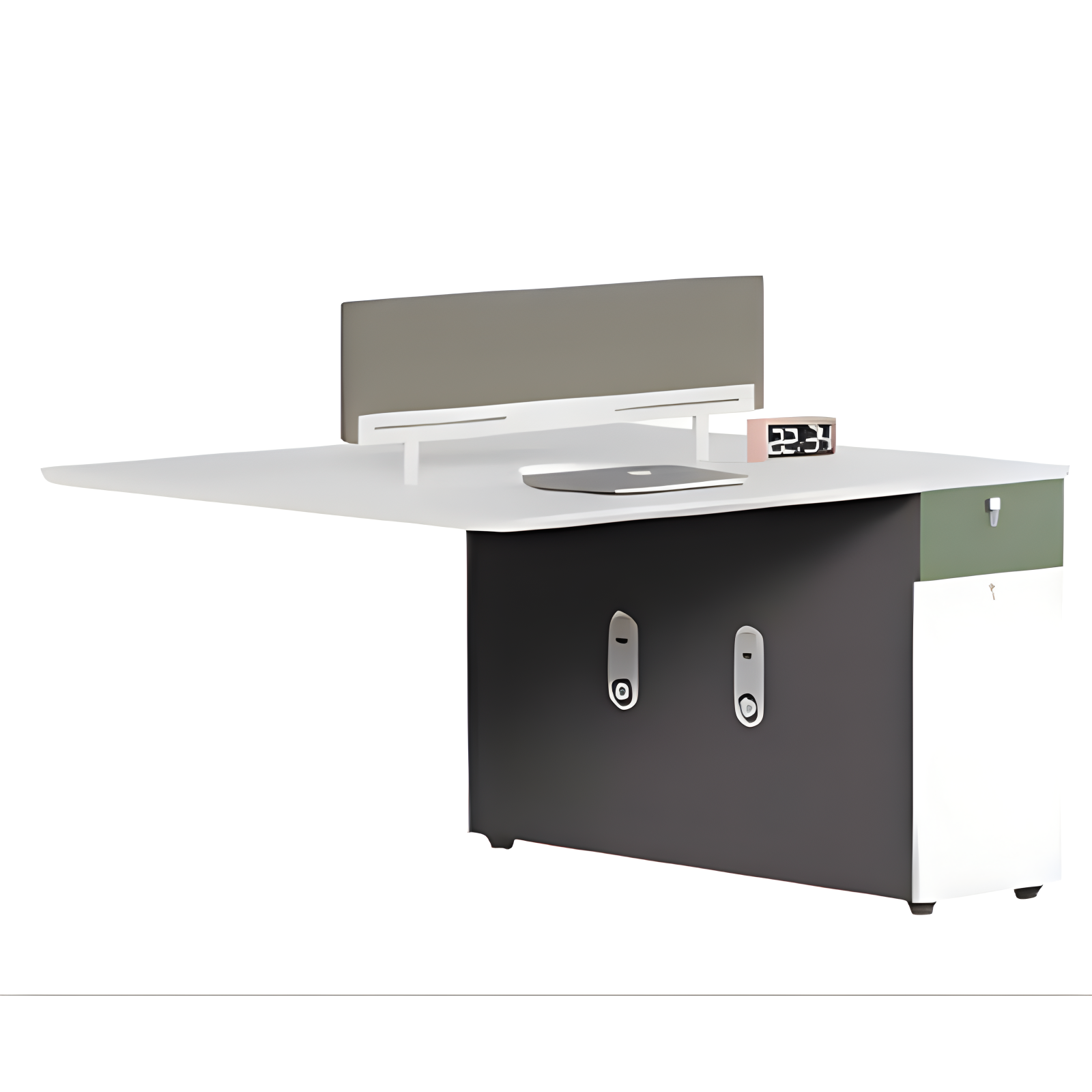 With its modern and practical design, the two-person workstation blends well with different office interiors. It is perfect for open-plan offices where space efficiency and teamwork are important.